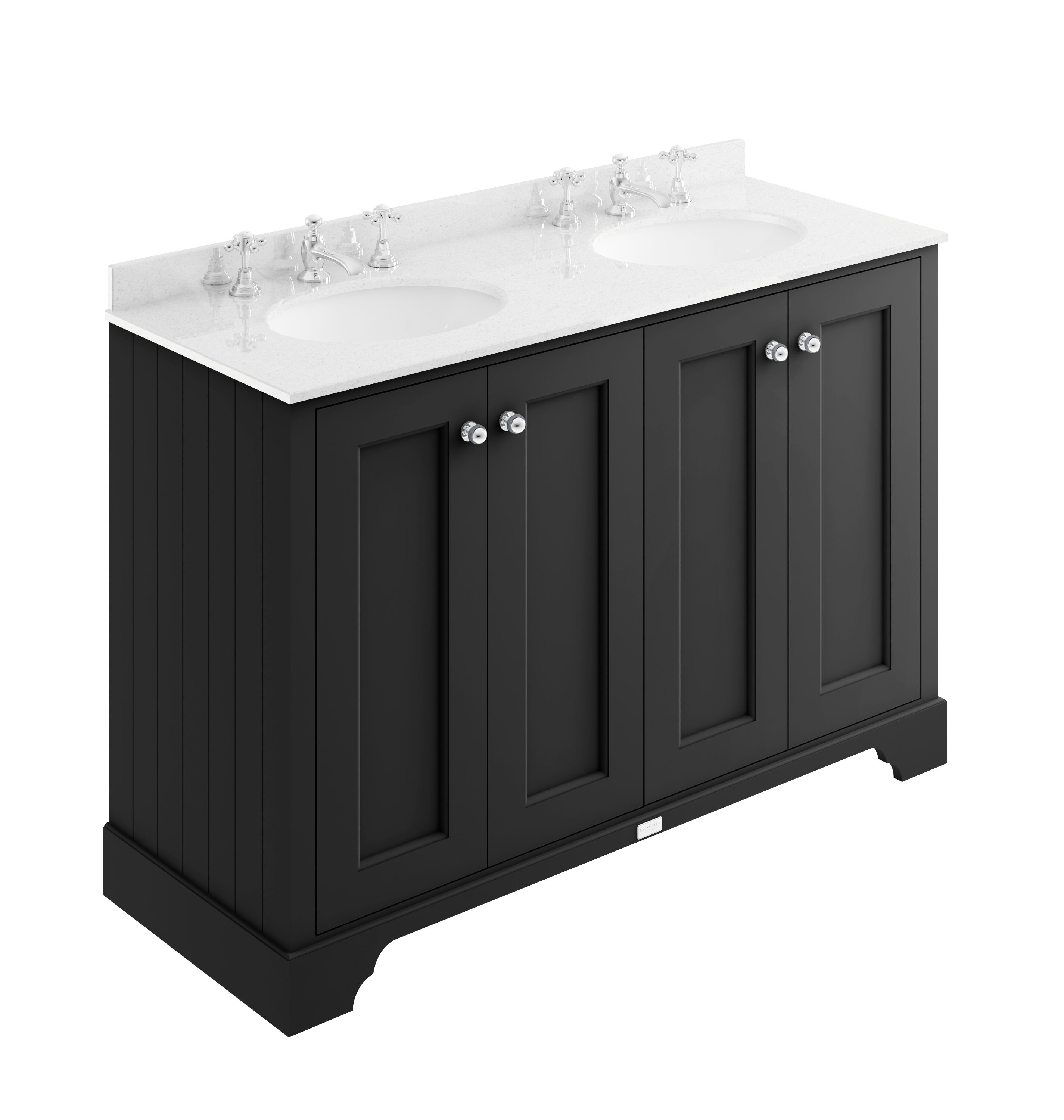 Bayswater 1200mm 4-Door Cab With 3 Tap Hole White Marble Top Basin - Matt Black