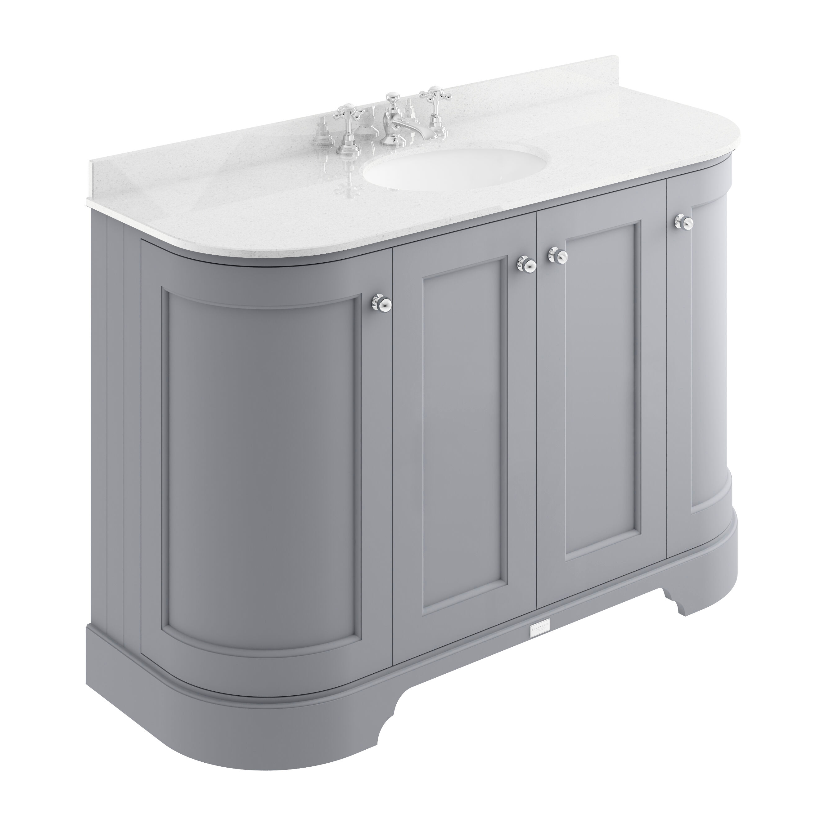 Bayswater 1200mm 4-Door Cab With 3 Tap Hole White Marble Top Basin - Plummett Grey