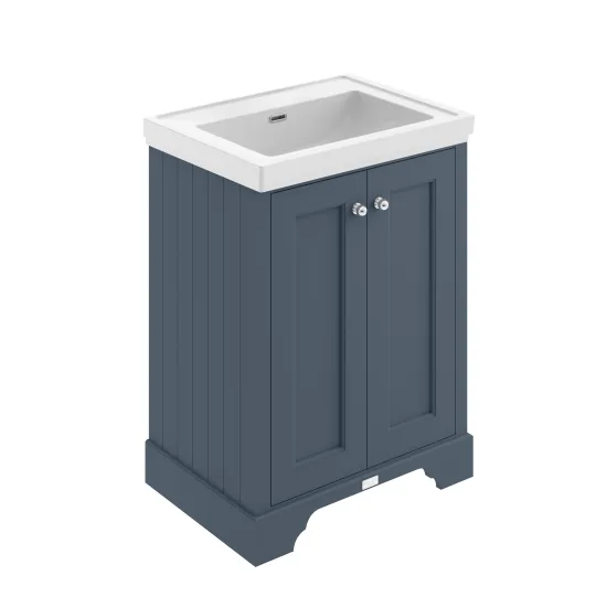 Bayswater 600mm 2-Door Cabinet With 0 Tap Hole Basin - Stiffkey Blue