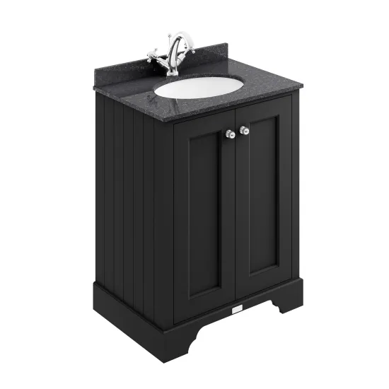 Bayswater 600mm 2-Door Cabinet With 1 Tap Hole Black Marble Top Basin - Matt Black