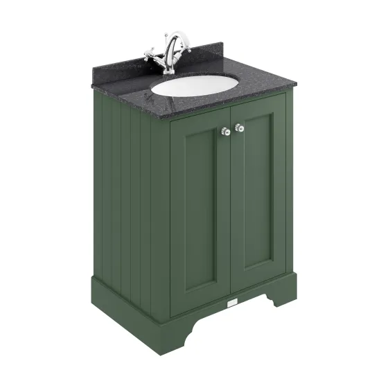 Bayswater 600mm 2-Door Cabinet With 1 Tap Hole Black Marble Top Basin - Hunter Green