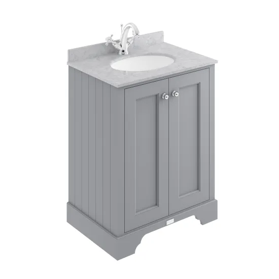 Bayswater 600mm 2-Door Cabinet With 1 Tap Hole Grey Marble Top Basin - Plummett Grey