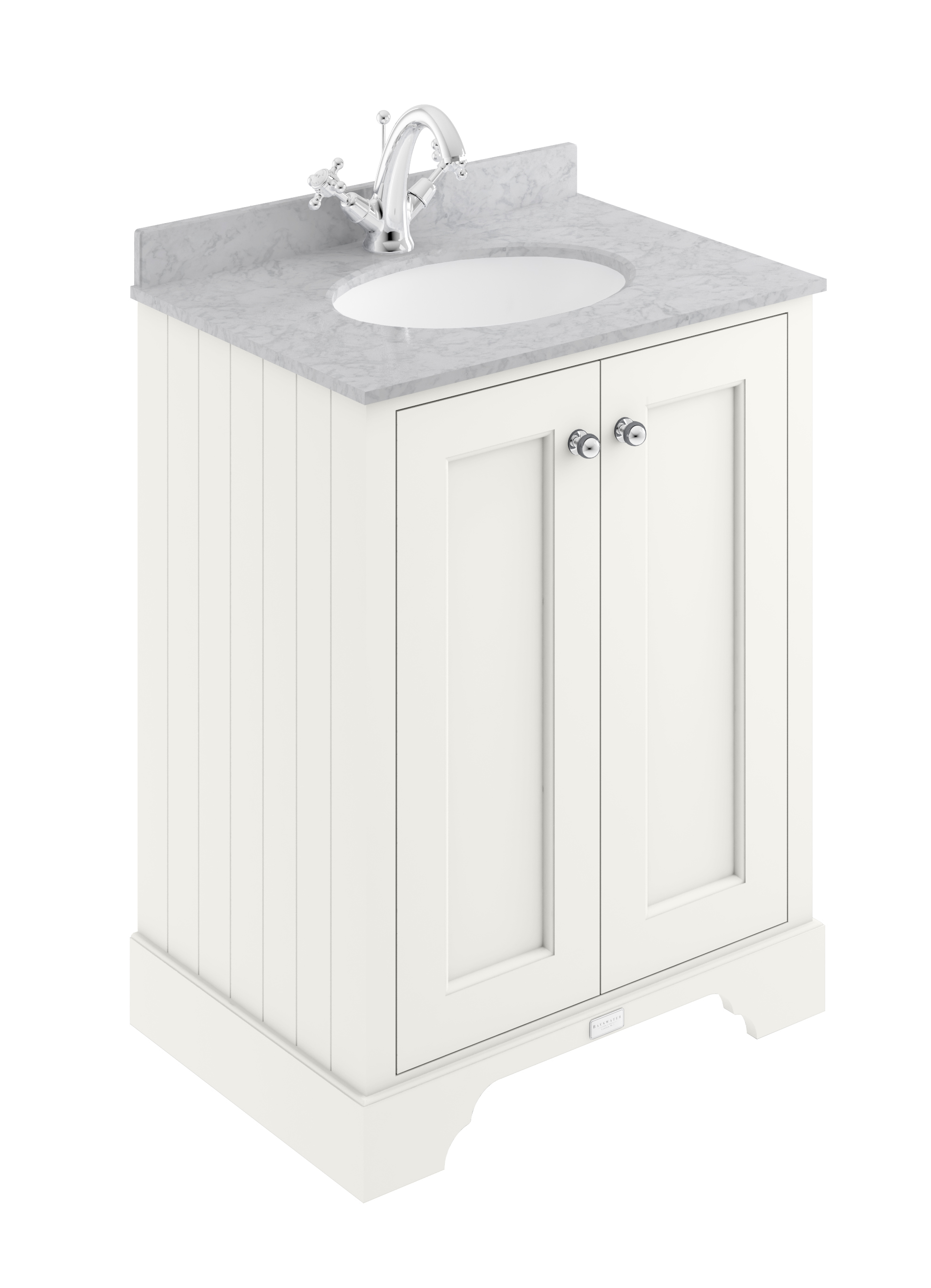 Bayswater 600mm 2-Door Cabinet with 1 Tap Hole Grey Marble Top Basin