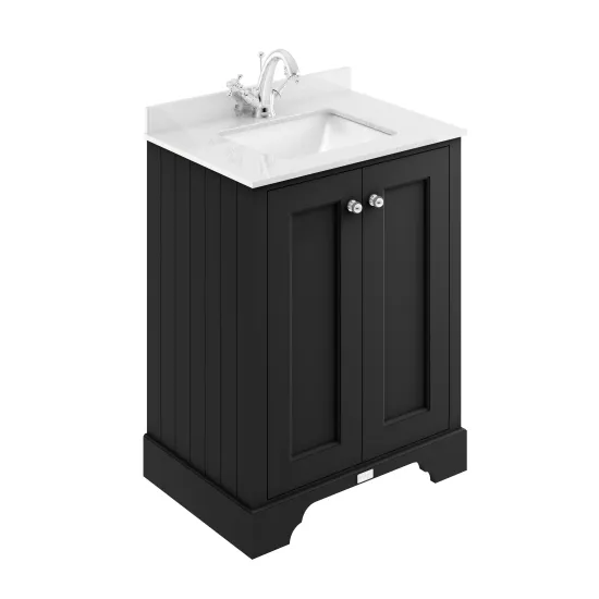 Bayswater 600mm 2-Door Cab With 1 Tap Hole White Marble Top Basin - Matt Black