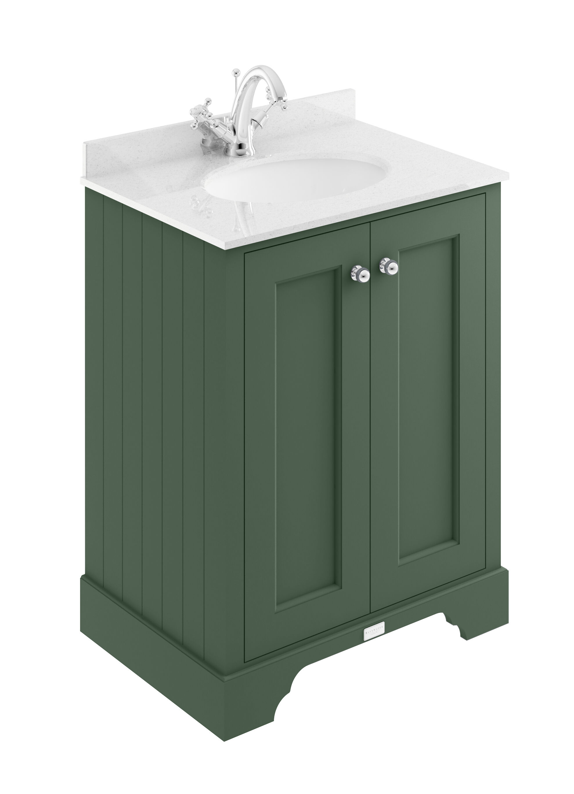 Bayswater 600mm 2-Door Cabinet With 1 Tap Hole White Marble Top Basin - Hunter Green