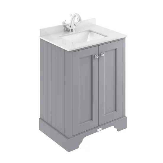 Bayswater 600mm 2-Door Cab With 1 Tap Hole White Marble Top Basin - Plummett Grey