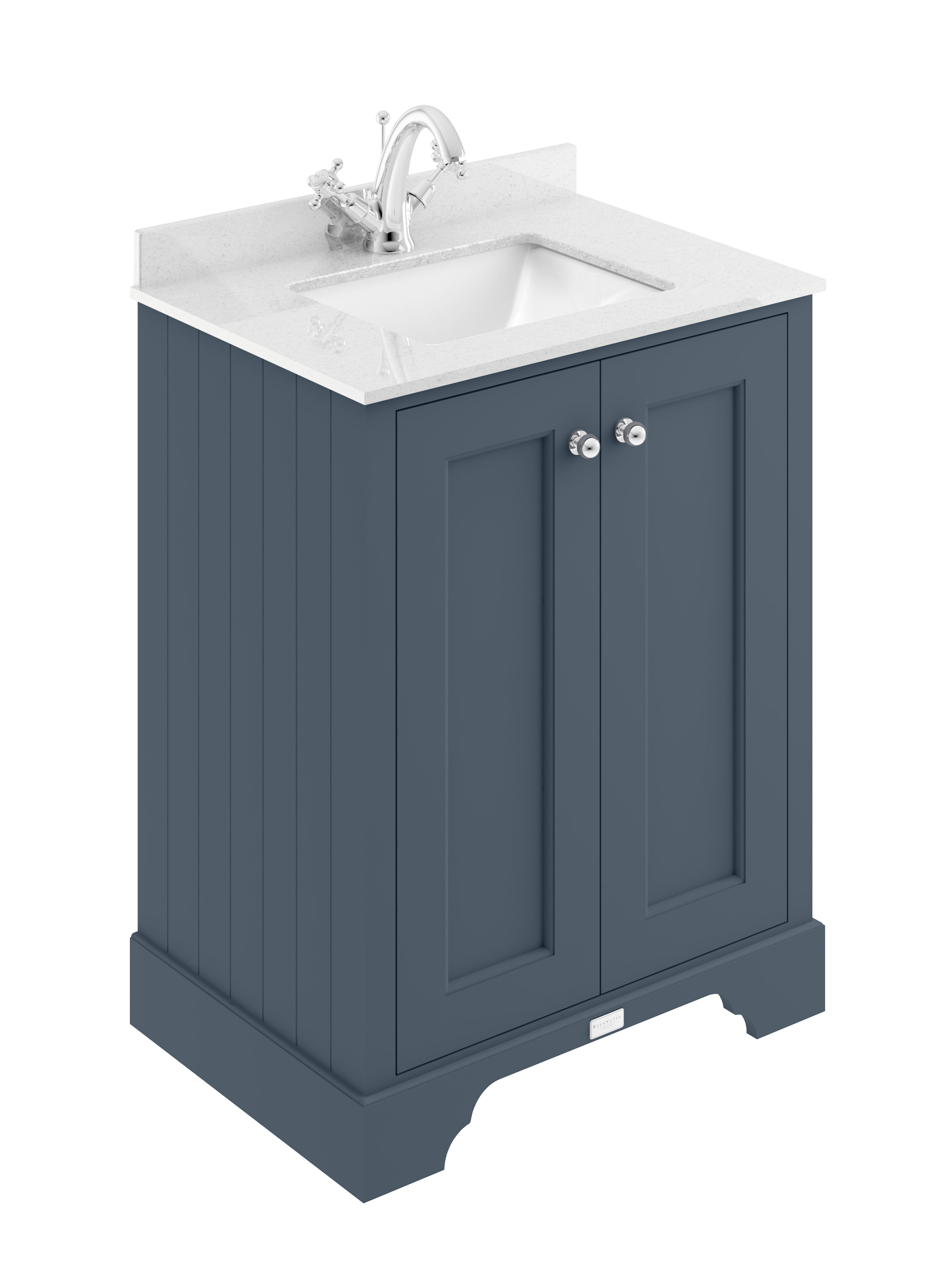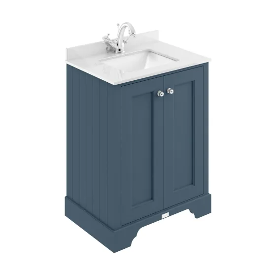 Bayswater 600mm 2-Door Cab With 1 Tap Hole White Marble Top Basin - Stiffkey Blue