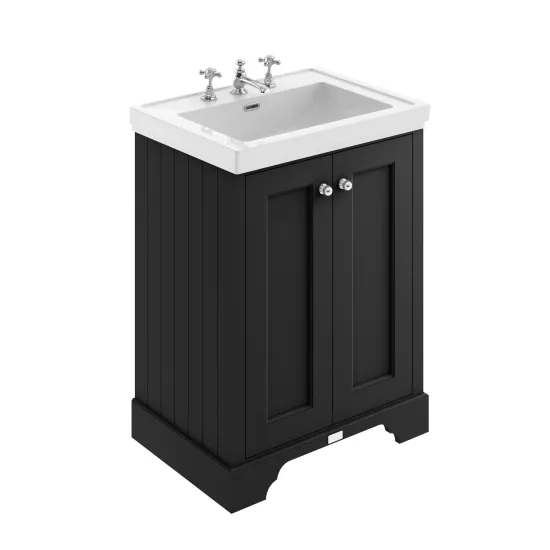 Bayswater 600mm 2-Door Cabinet With 3 Tap Hole Basin - Matt Black