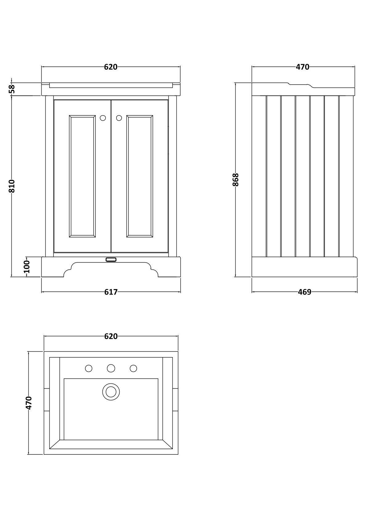 Bayswater 600mm 2-Door Cabinet with 3 Tap Hole Basin