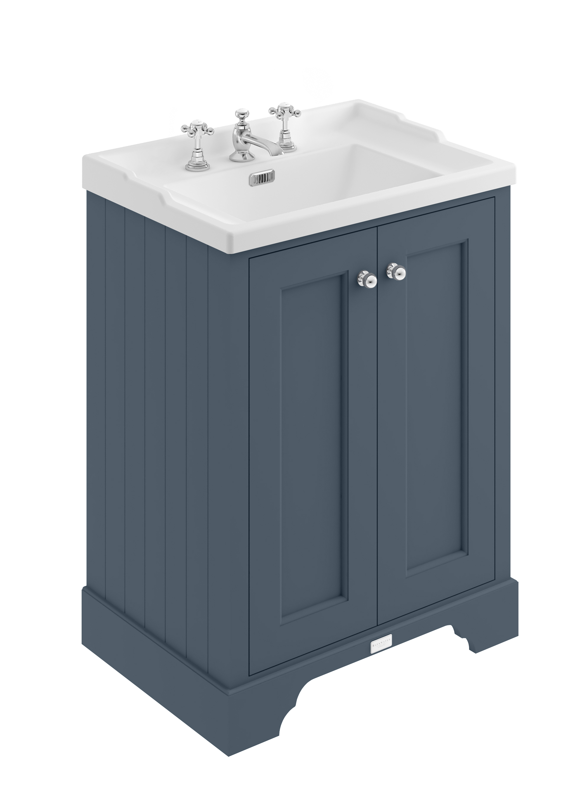 Bayswater 600mm 2-Door Cabinet With 3 Tap Hole Basin - Stiffkey Blue