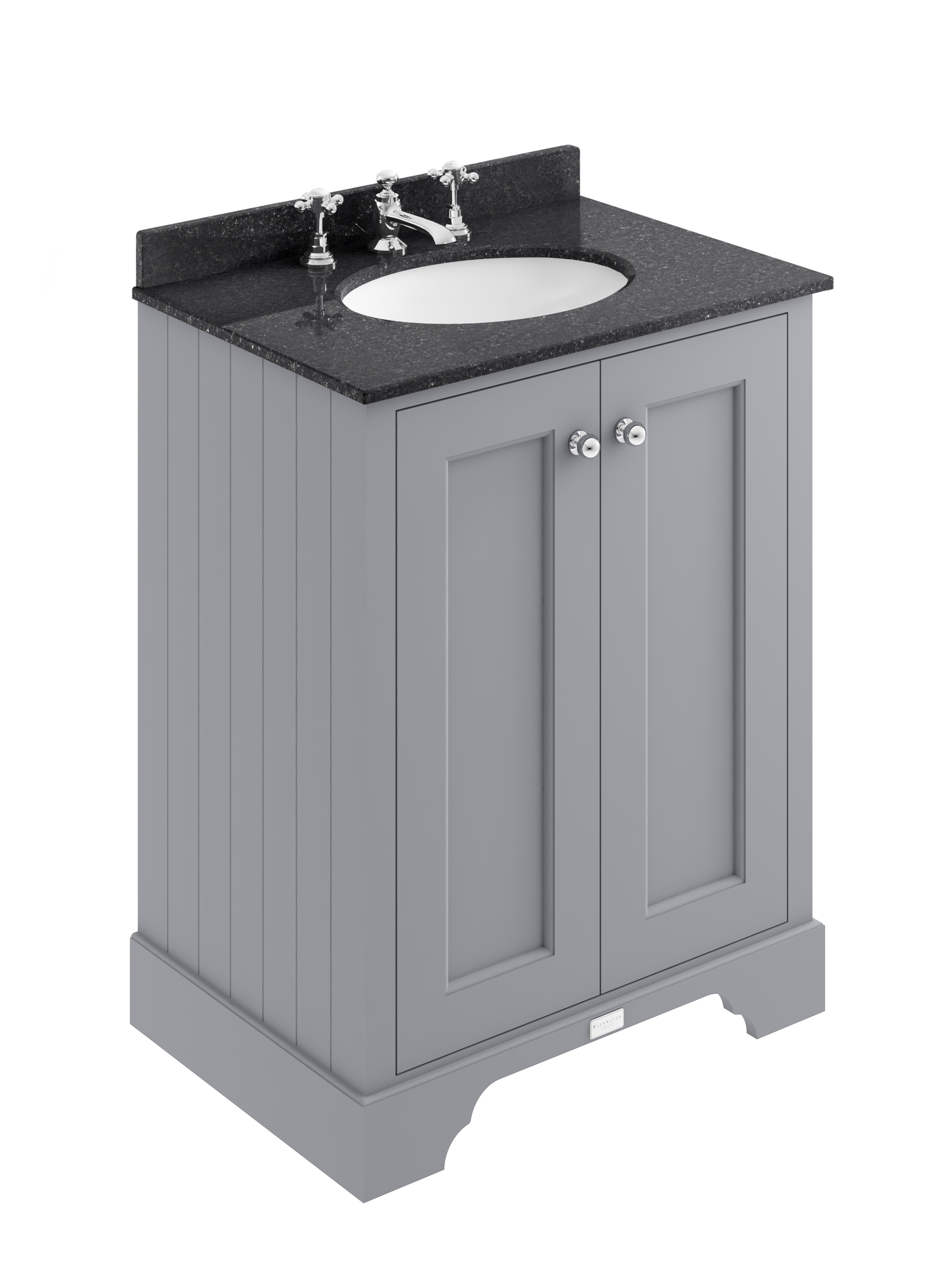 Bayswater 600mm 2-Door Cab With 3 Tap Hole Black Marble Top Basin - Plummett Grey