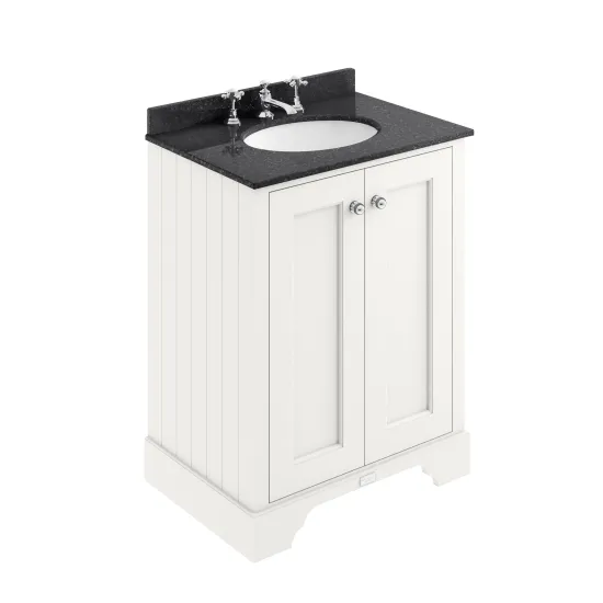 Bayswater 600mm 2-Door Cabinet with 3 Tap Hole Black Marble Top Basin