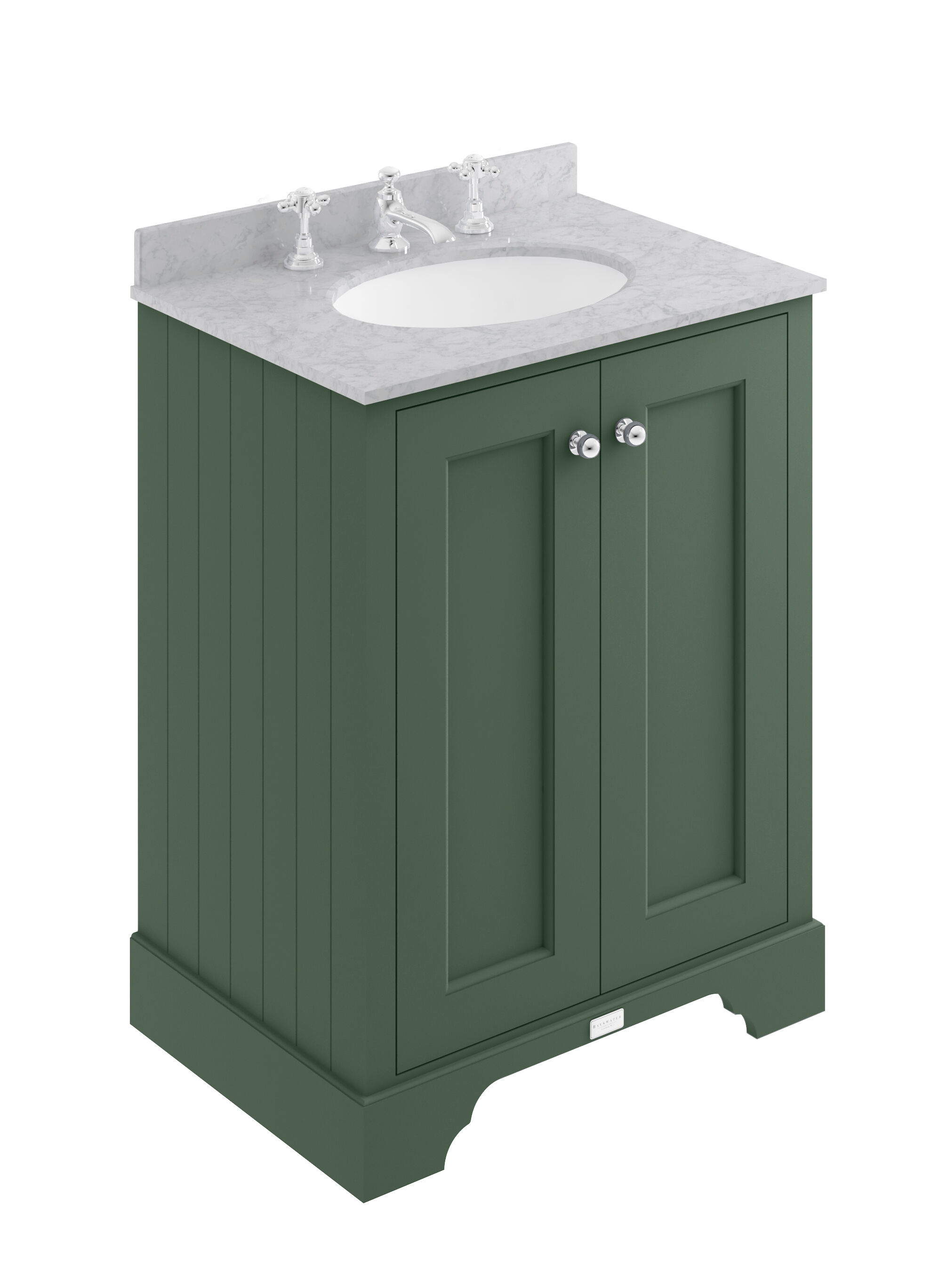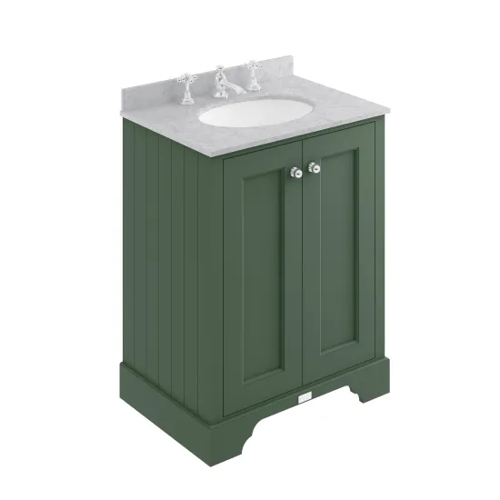 Bayswater 600mm 2-Door Cab With 3 Tap Hole Grey Marble Top Basin - Hunter Green