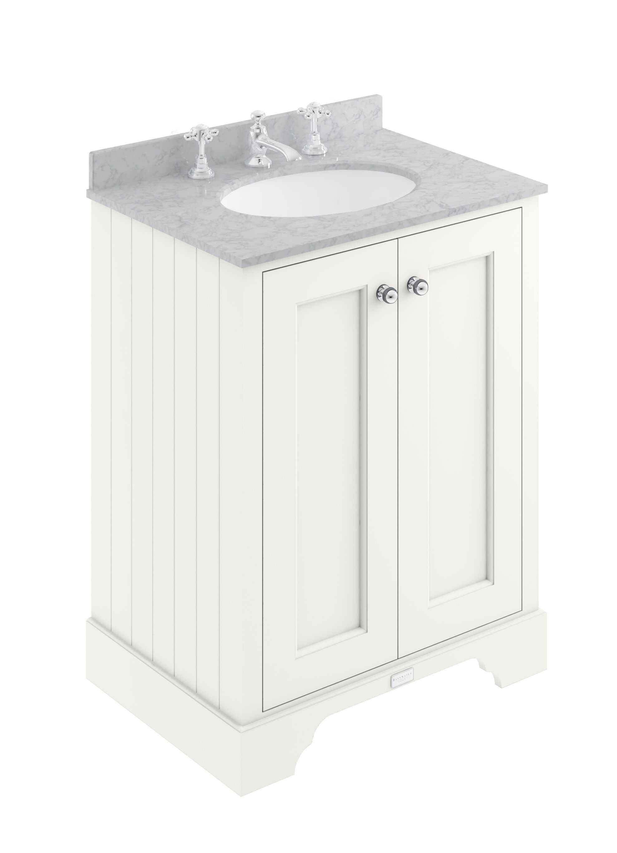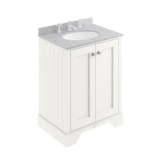 Bayswater 600mm 2-Door Cab With 3 Tap Hole Grey Marble Top Basin - Pointing White
