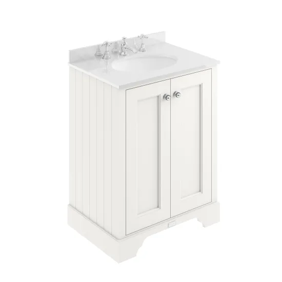 Bayswater 600mm 2-Door Cabinet with 3 Tap Hole White Marble Top Basin