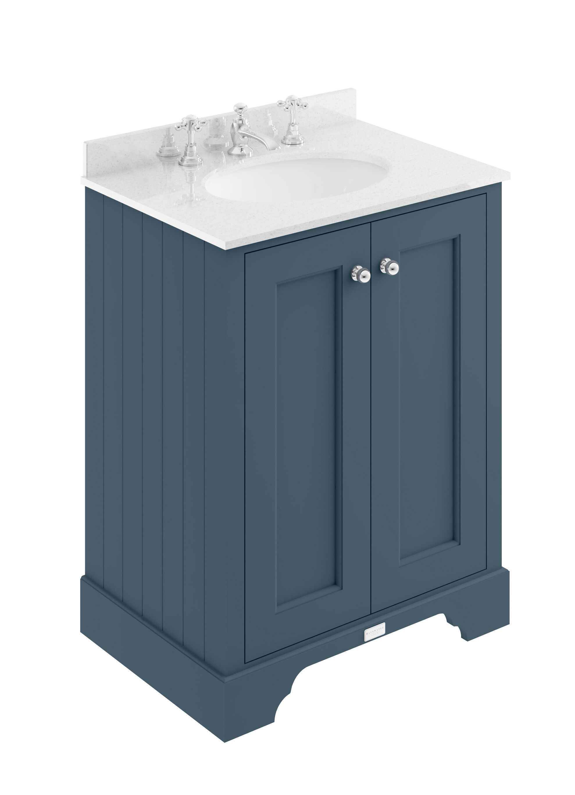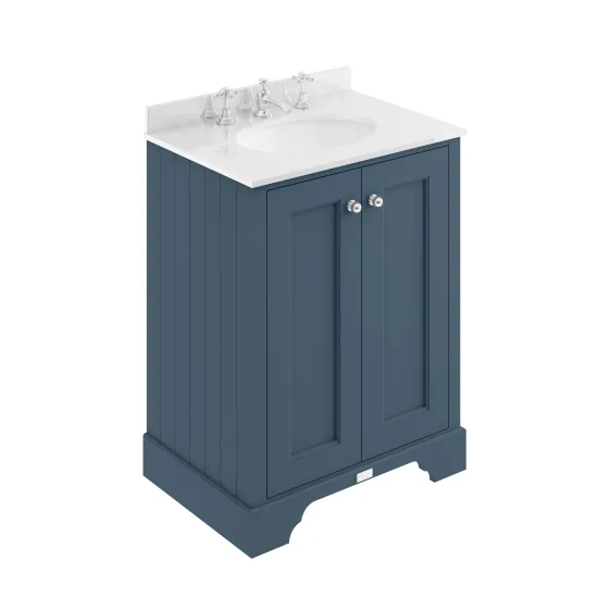 Bayswater 600mm 2-Door Cab With 3 Tap Hole White Marble Top Basin - Stiffkey Blue