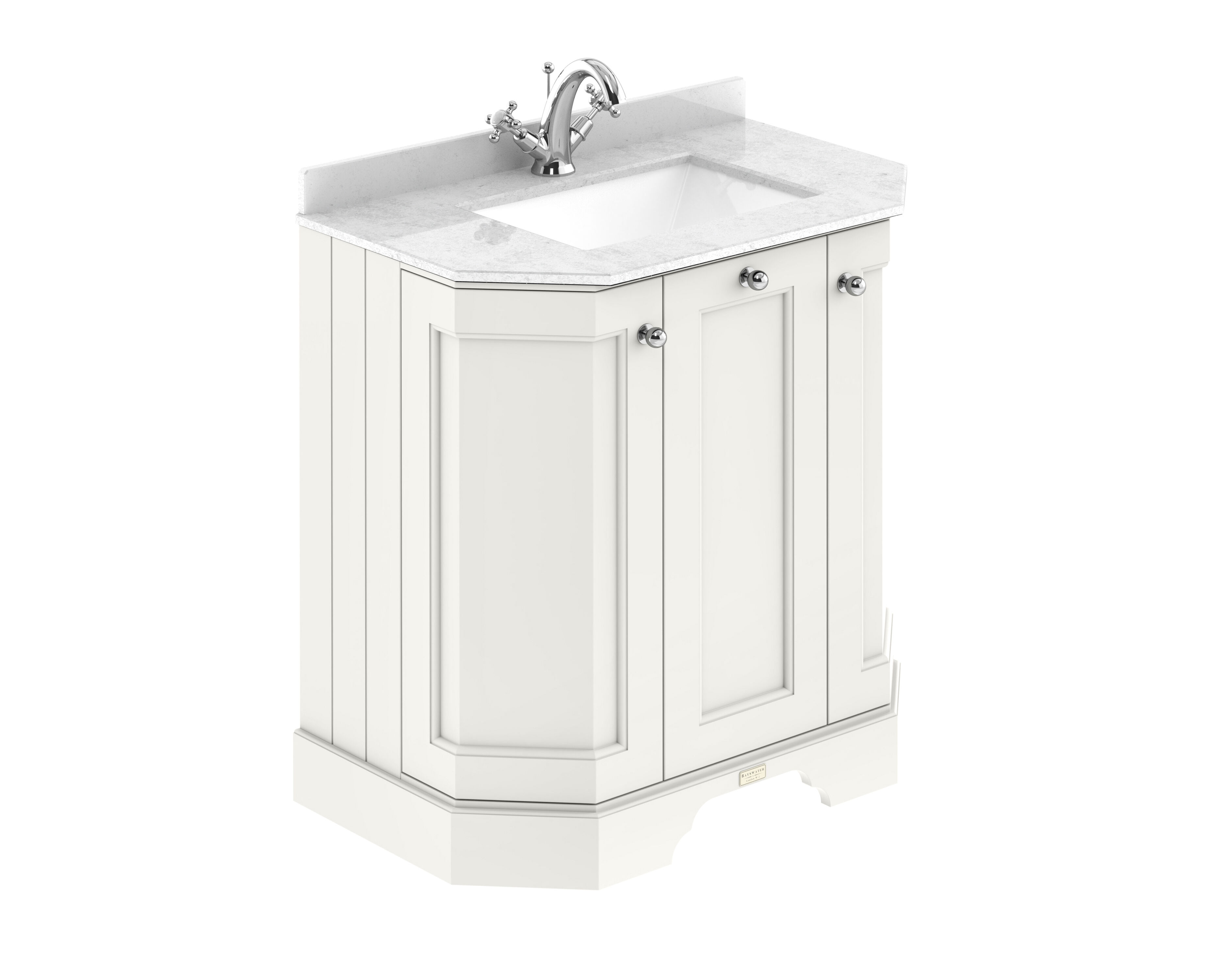 Bayswater 750mm 3 Door Angled Cabinet with 1 Tap Hole Marble Top Basin