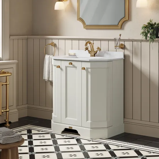 This striking white cabinet creates a unique centre piece to any classic themed bathroom
