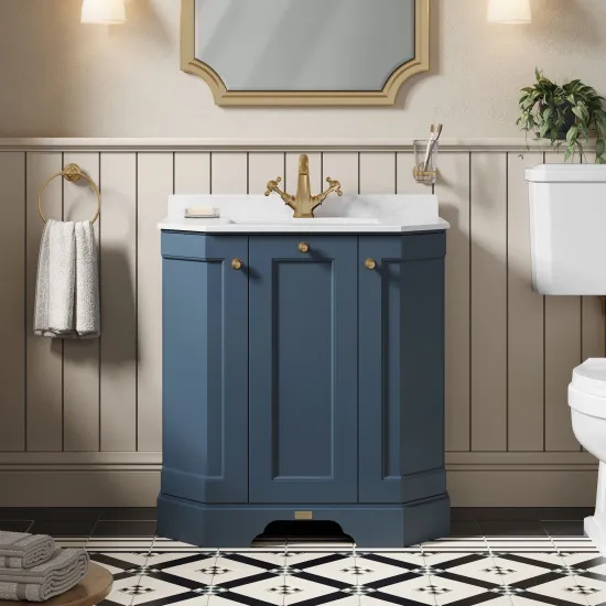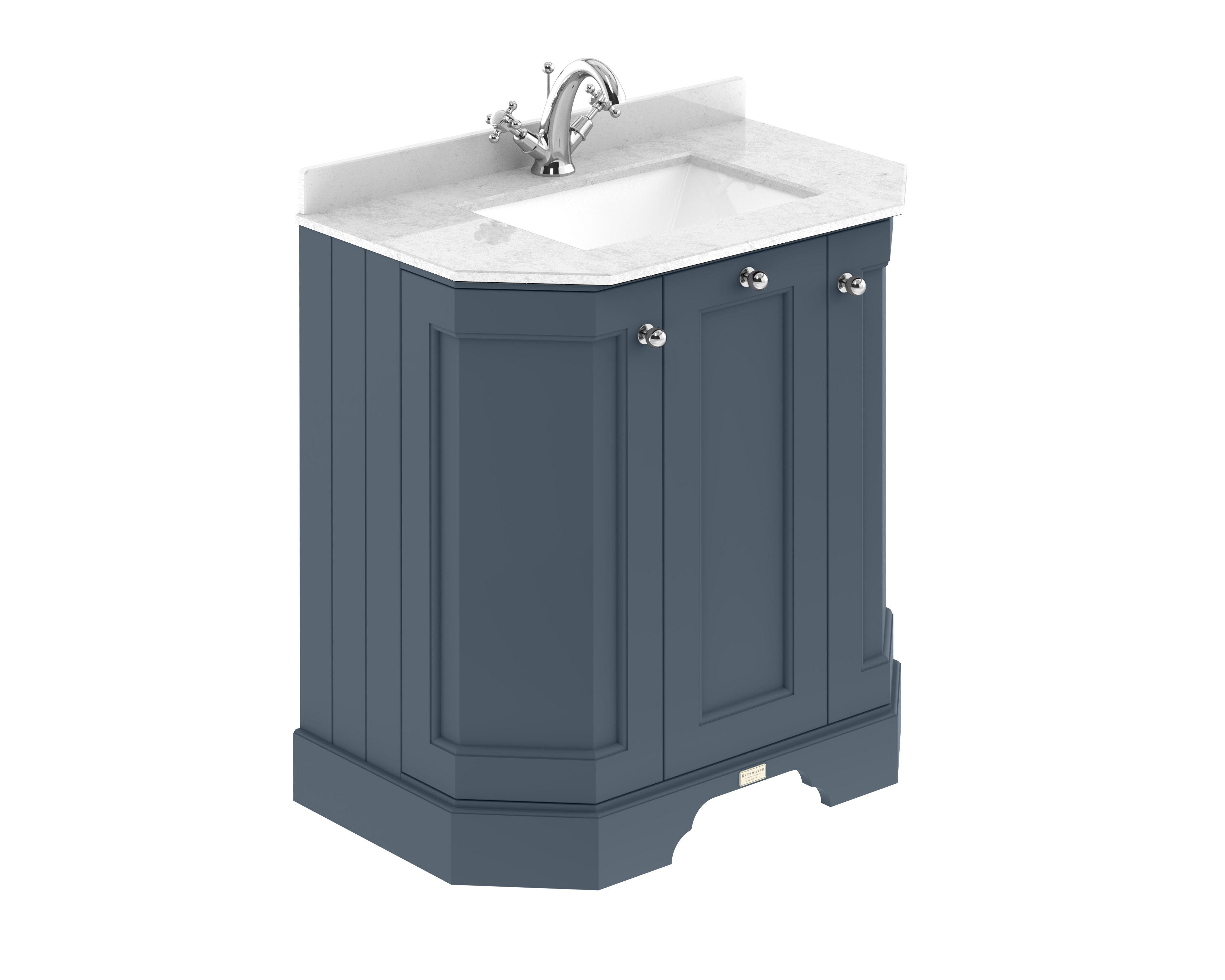 Bayswater 750mm 3 Door Angled Cabinet With 1 Tap Hole Marble Top Basin - Stiffkey Blue