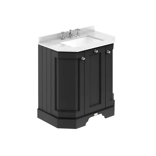 Bayswater 750mm 3 Door Angled Cabinet With 1 Tap Hole Marble Top Basin - Matt Black