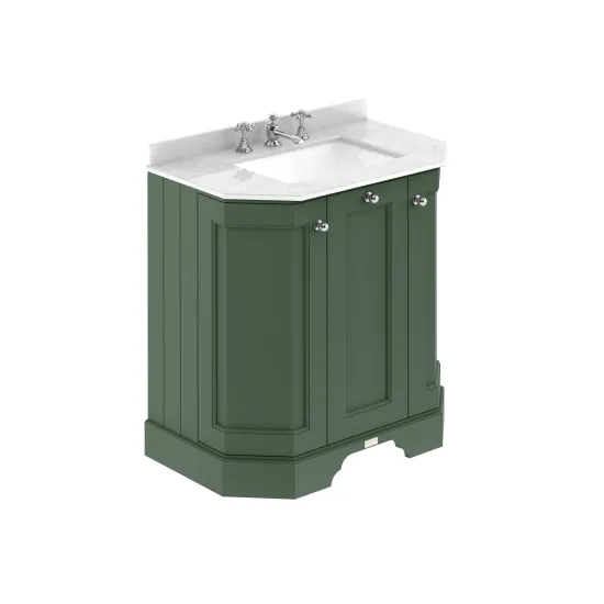 Bayswater 750mm 3 Door Angled Cabinet With 1 Tap Hole Marble Top Basin - Hunter Green