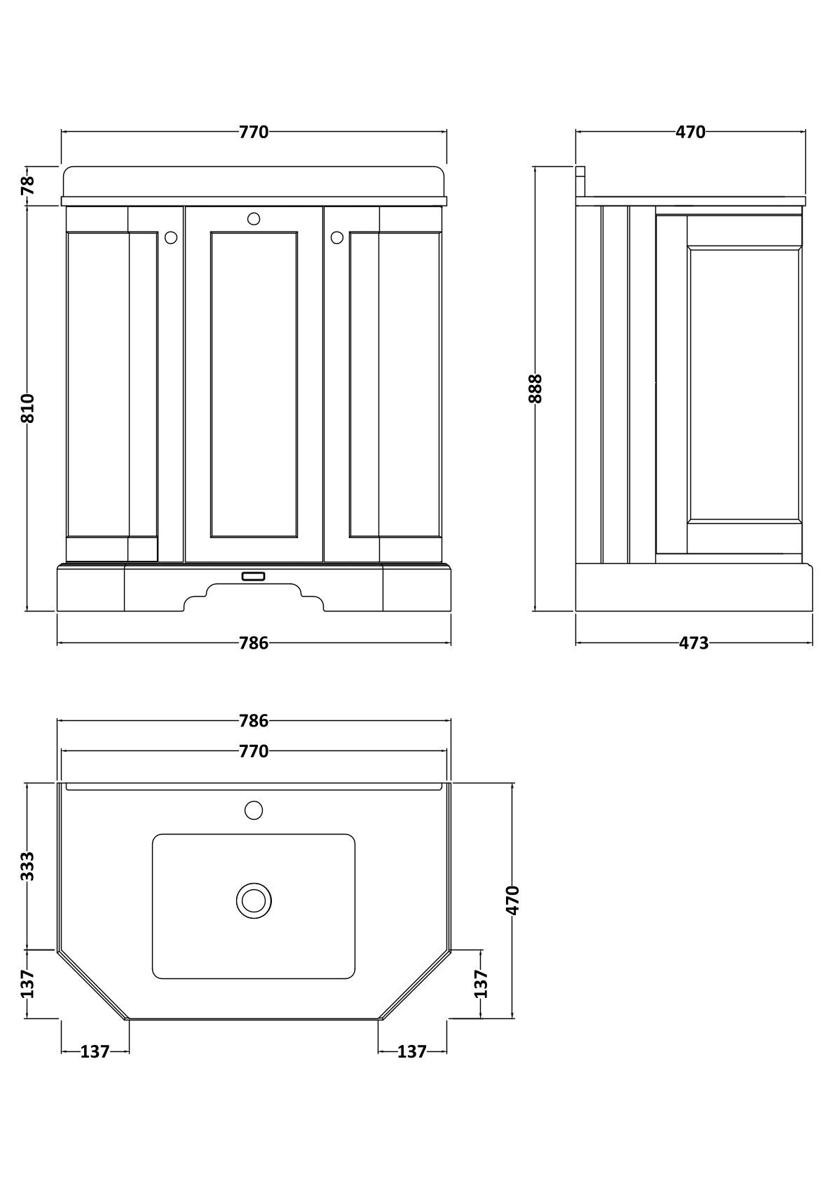 Bayswater 750mm 3 Door Angled Cabinet with 1 Tap Hole Marble Top Basin