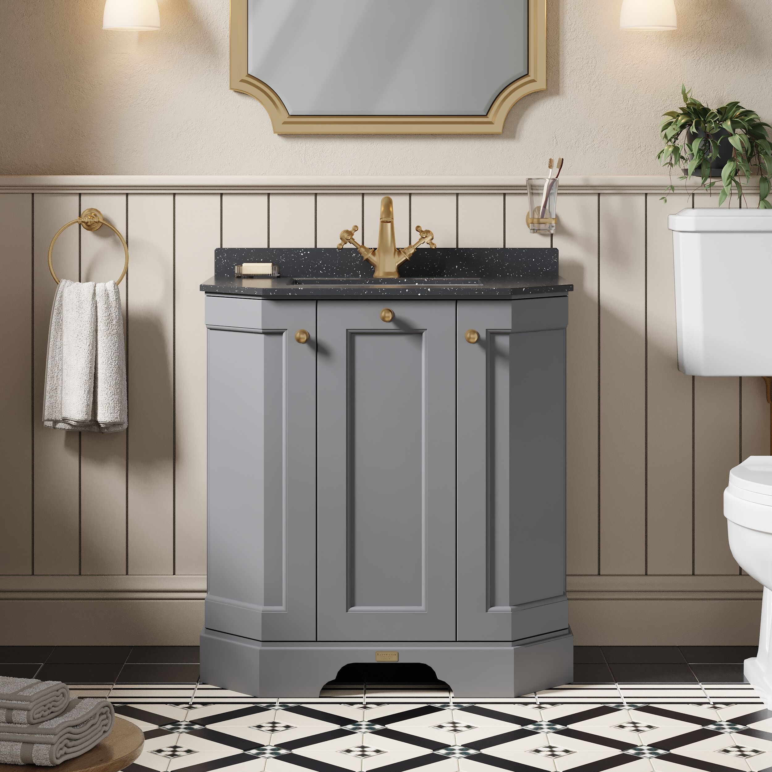 Bayswater 750mm 3 Door Angled Cabinet With 1 Tap Hole Marble Top Basin - Plummett Grey