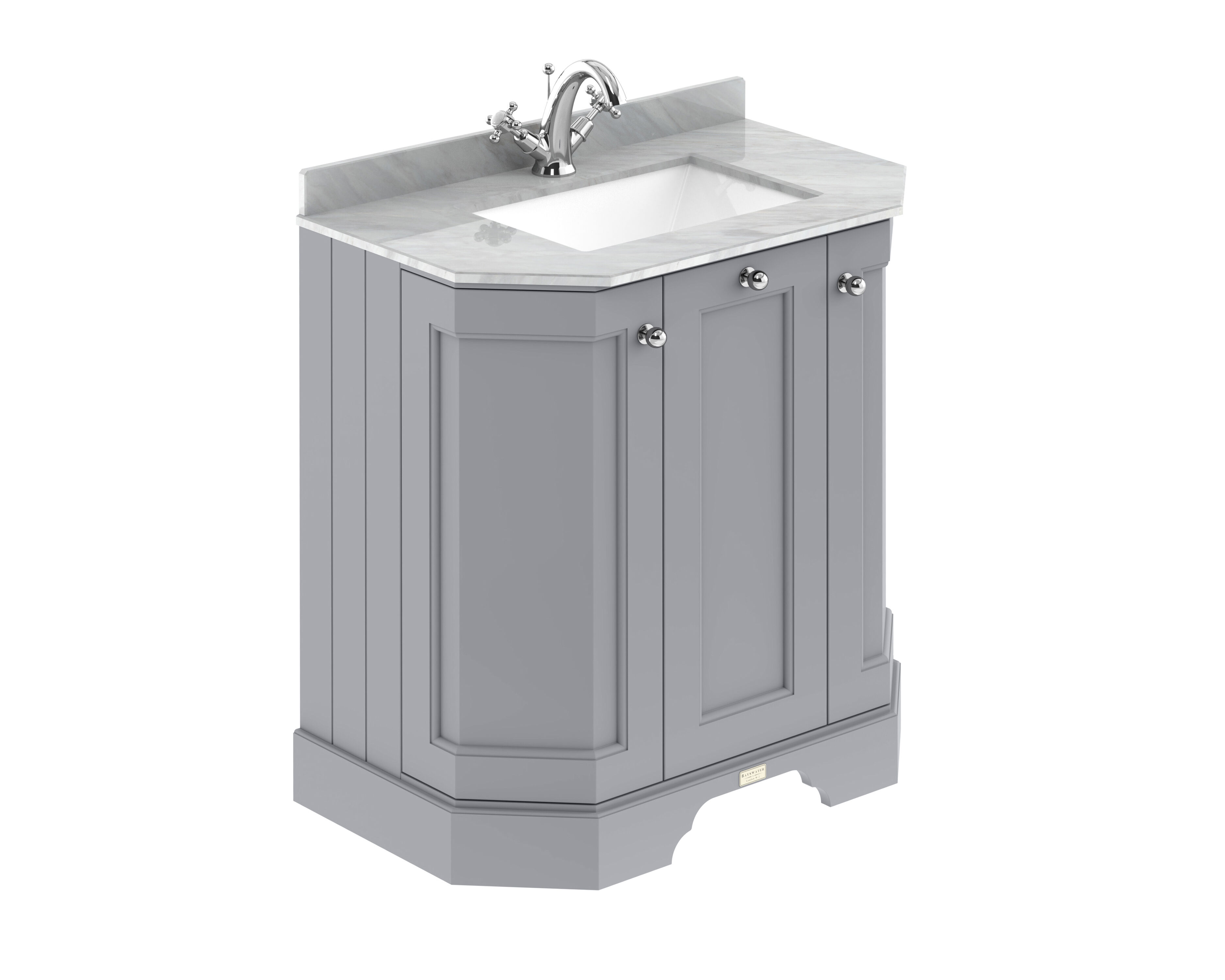 Bayswater 750mm 3 Door Angled Cabinet With 1 Tap Hole Marble Top Basin - Plummett Grey