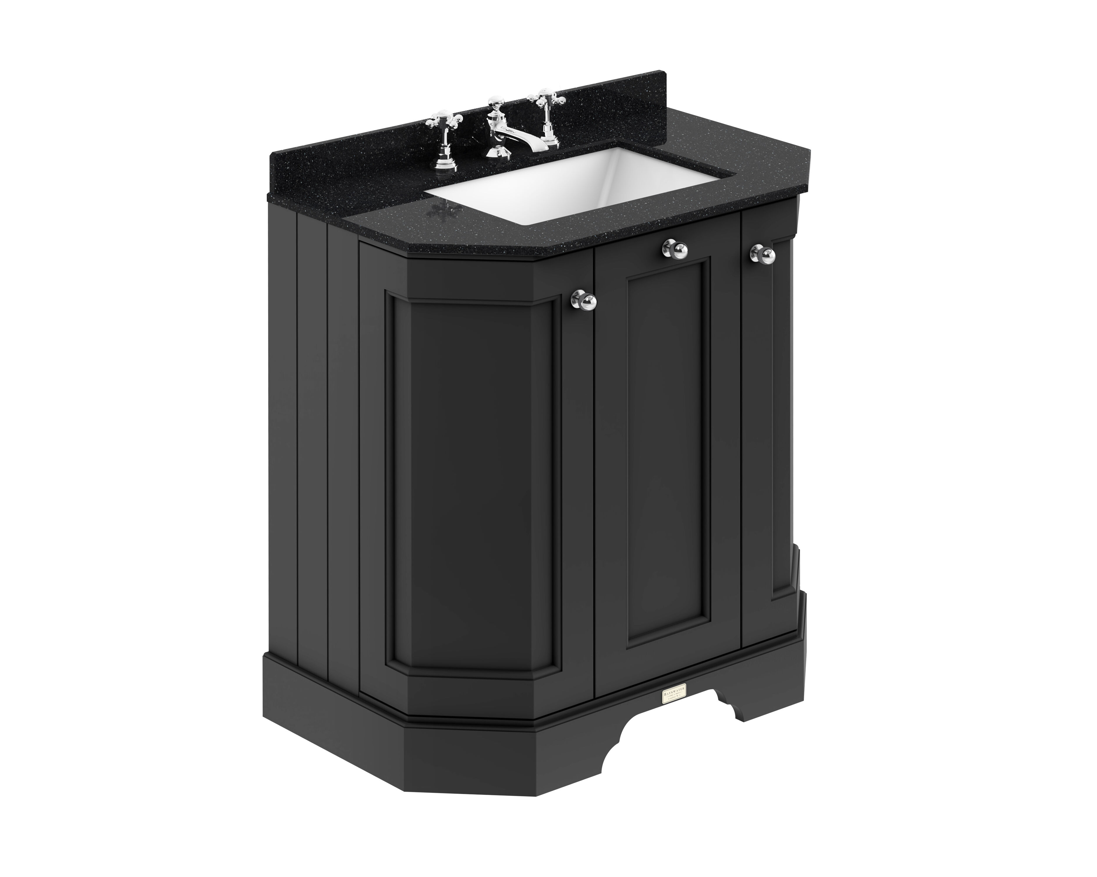 Bayswater 750mm 3-Door Angled Cab With 3 Tap Hole Black Marble Top Basin - Matt Black
