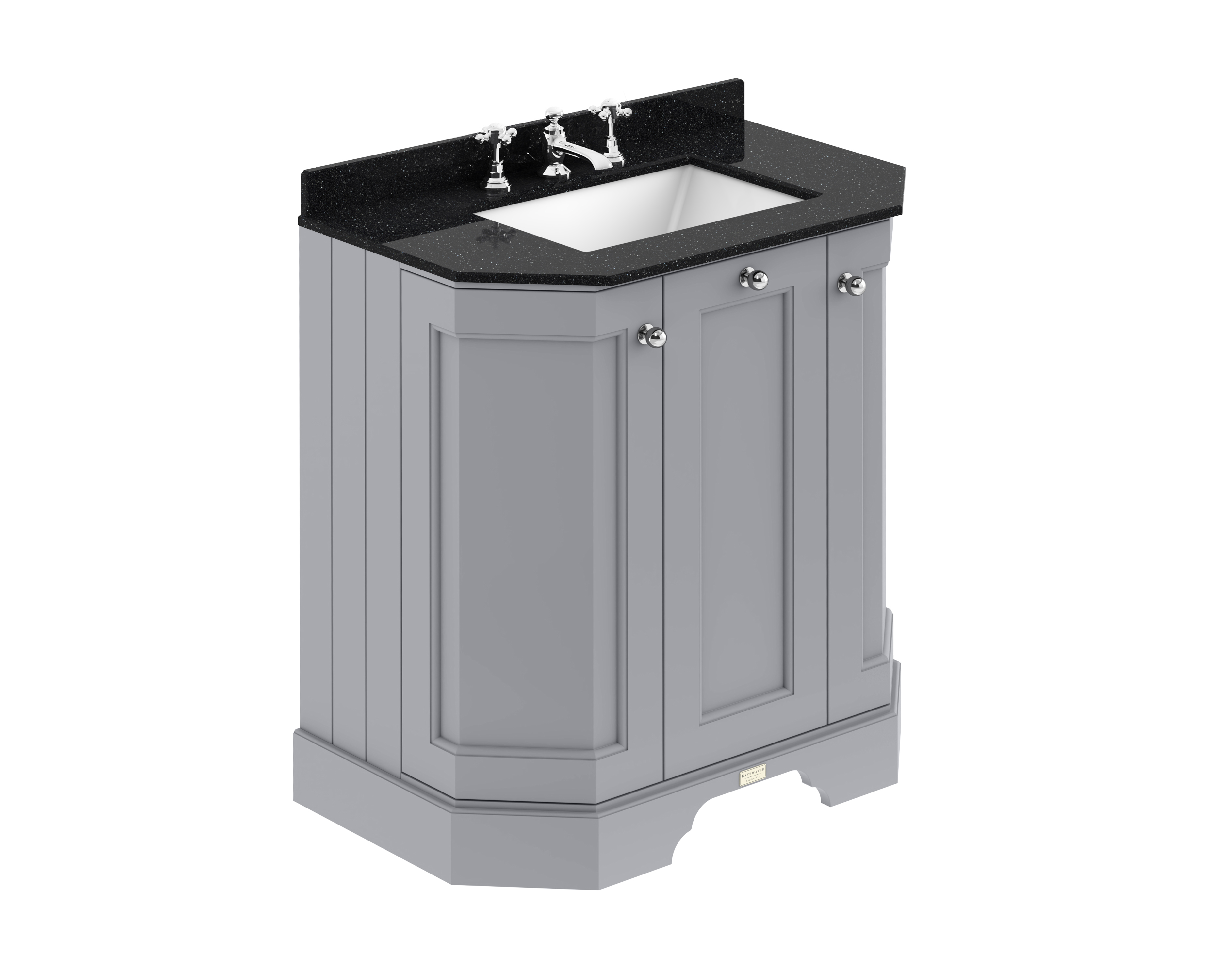 Bayswater 750mm 3-Door Angled Cab With 3 Tap Hole Black Marble Top Basin - Plummett Grey