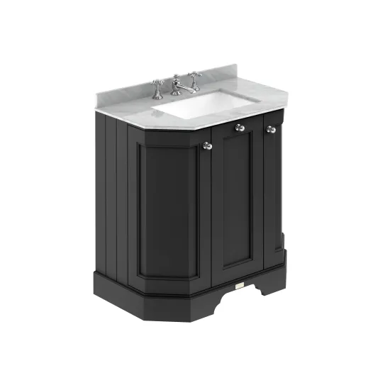 Bayswater 750mm 3-Door Angled Cab With 3 Tap Hole Grey Marble Top Basin - Matt Black