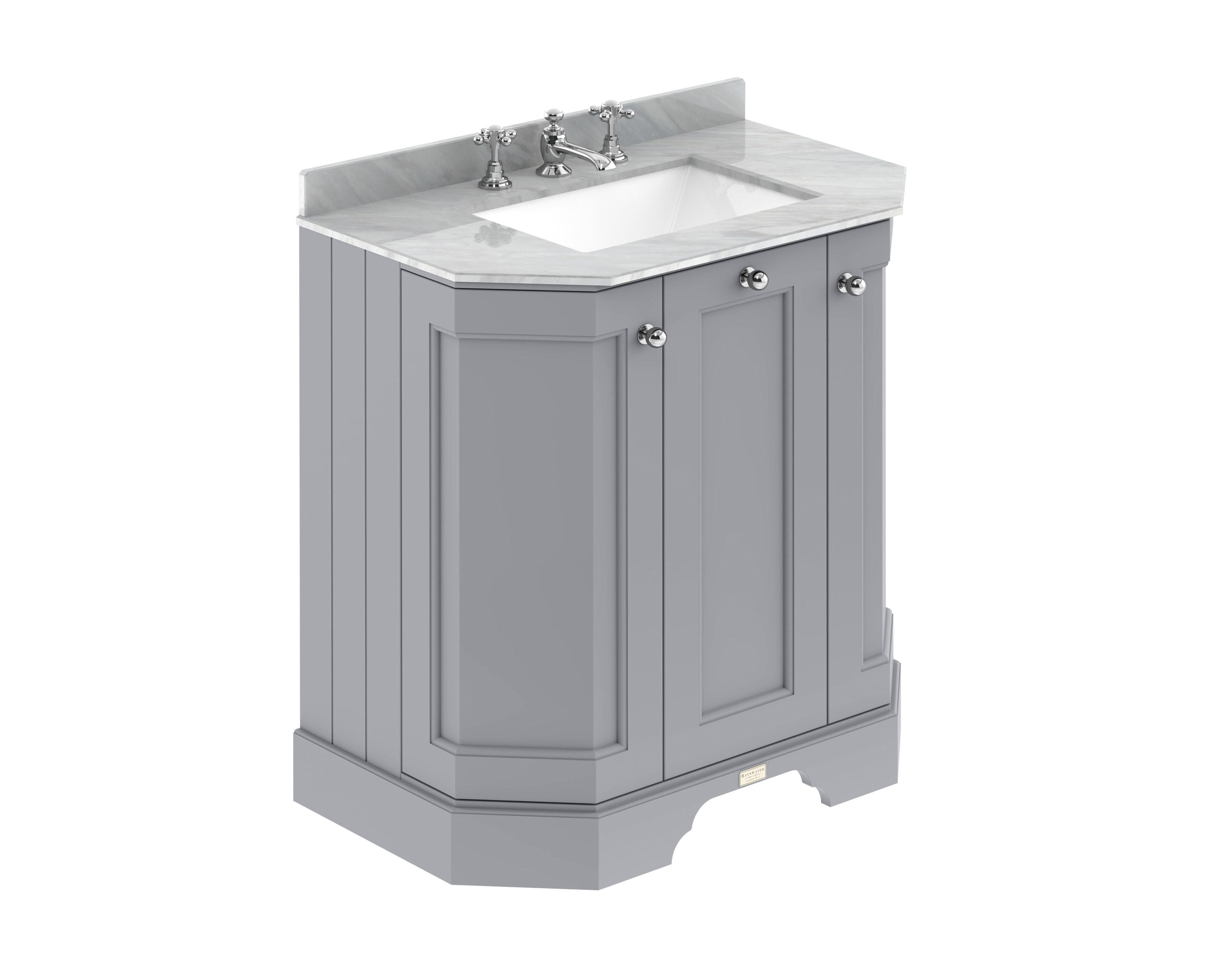 Bayswater 750mm 3-Door Angled Cabinet with 3 Tap Hole Grey Marble Top Basin