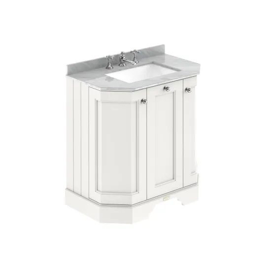 Bayswater 750mm 3-Door Angled Cab With 3 Tap Hole Grey Marble Top Basin - Pointing White