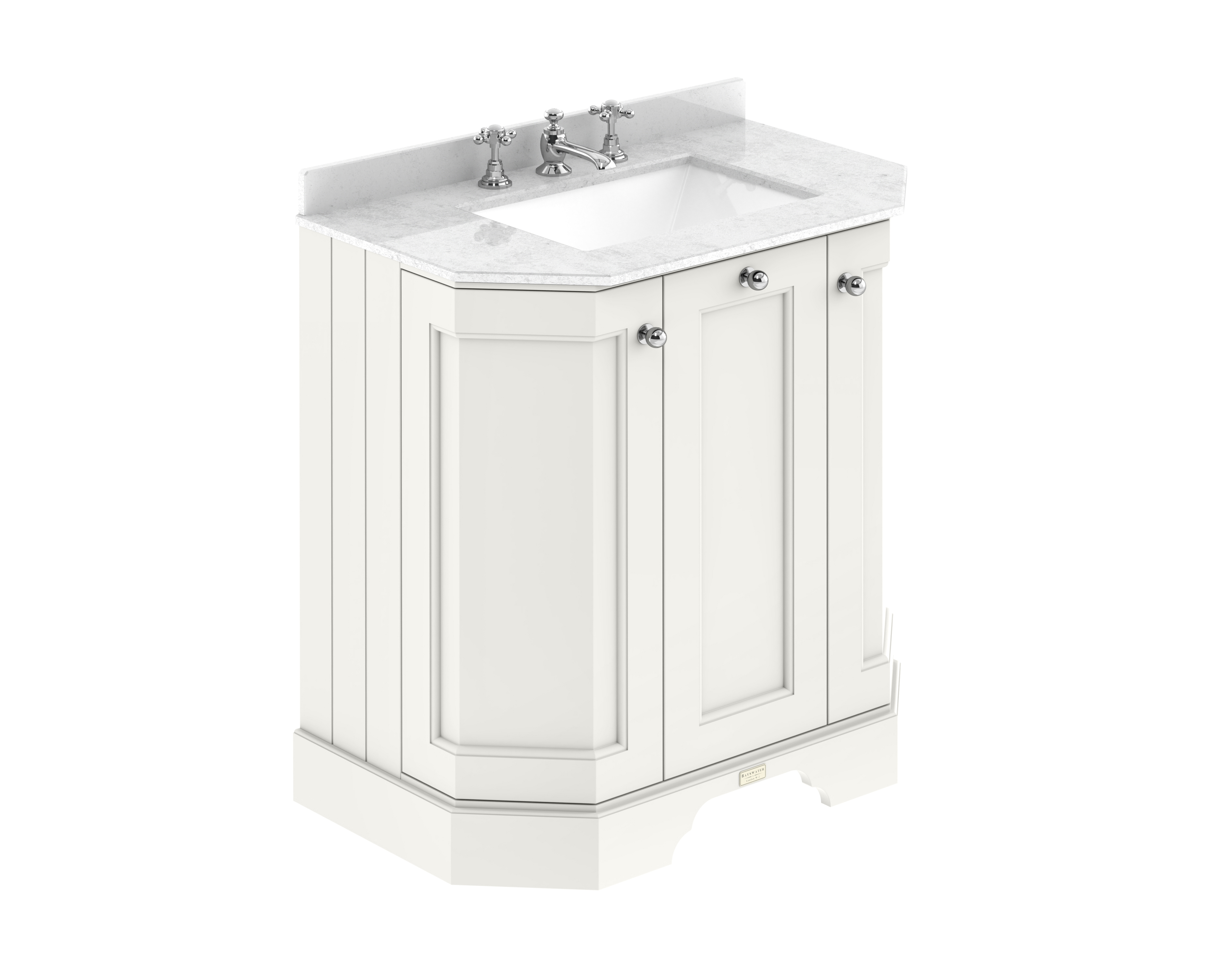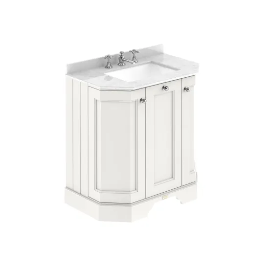 Bayswater 750mm 3-Door Angled Cabinet with 3 Tap Hole White Marble Top Basin