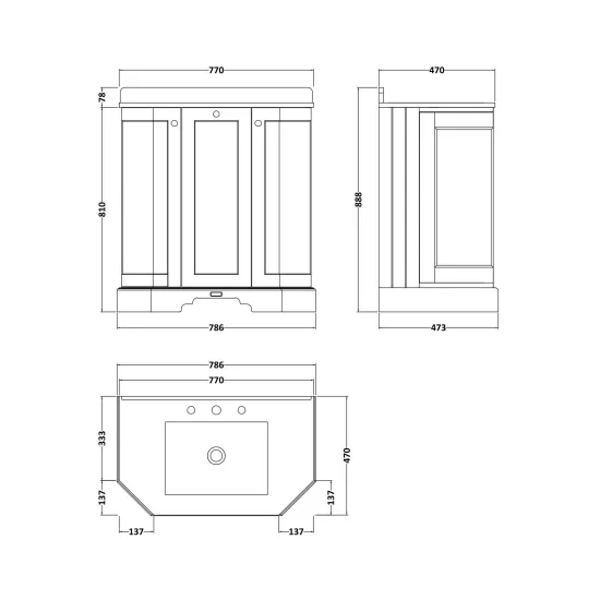 Supplied with a traditional and elegant Bayswater basin, predrilled with 3 tap holes