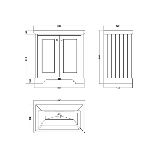 Bayswater 800mm 2-Door Cabinet with 0 Tap Hole Basin