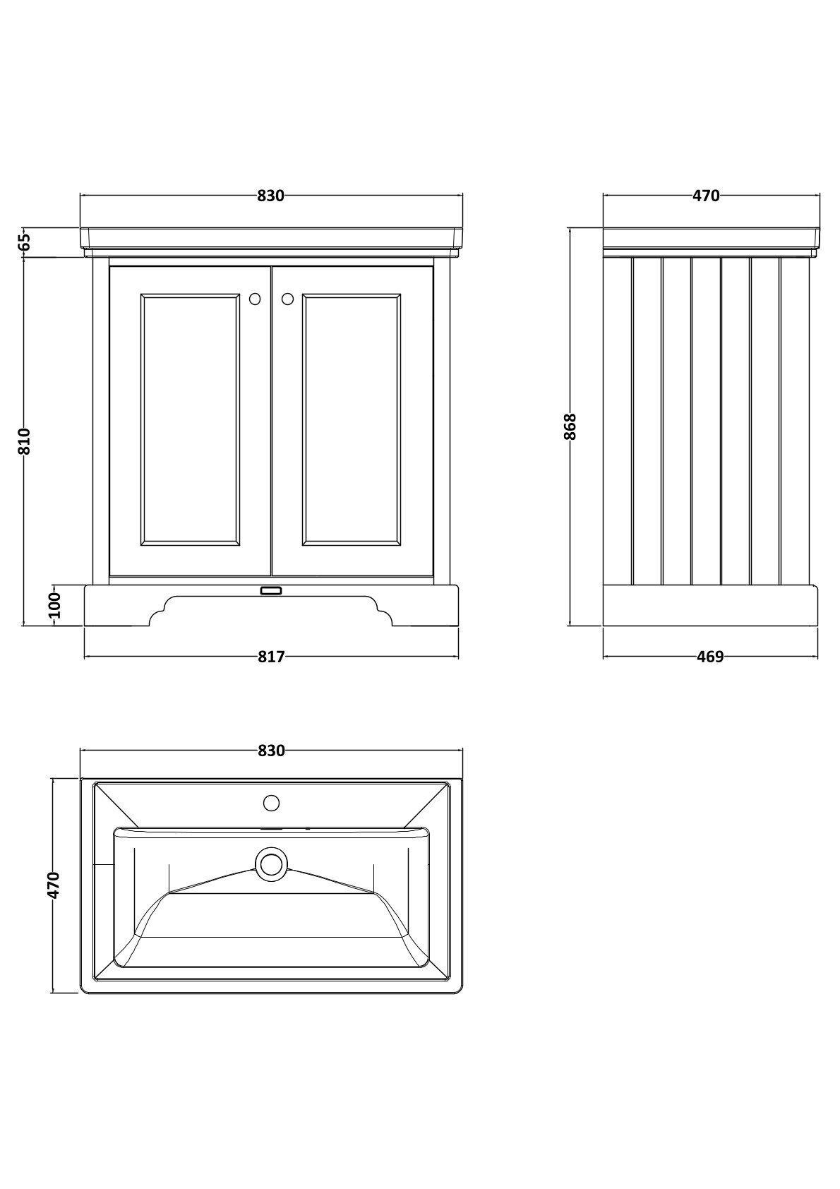 Bayswater 800mm 2-Door Cabinet With 1 Tap Hole Basin - Matt Black