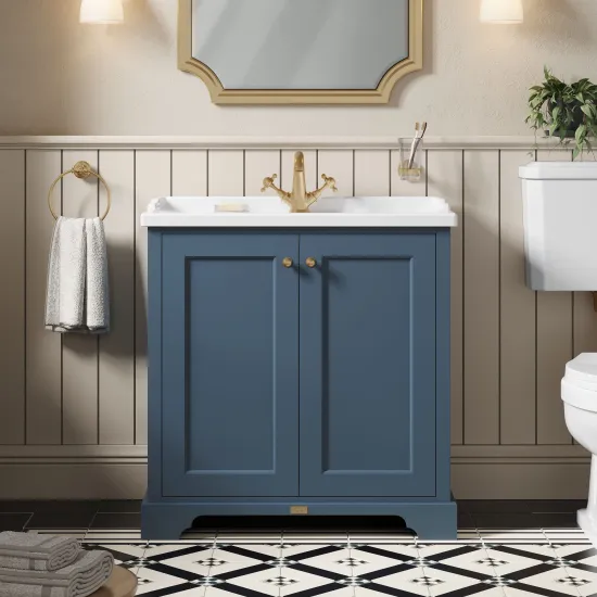 Bayswater 800mm 2-Door Cabinet With 1 Tap Hole Basin - Stiffkey Blue
