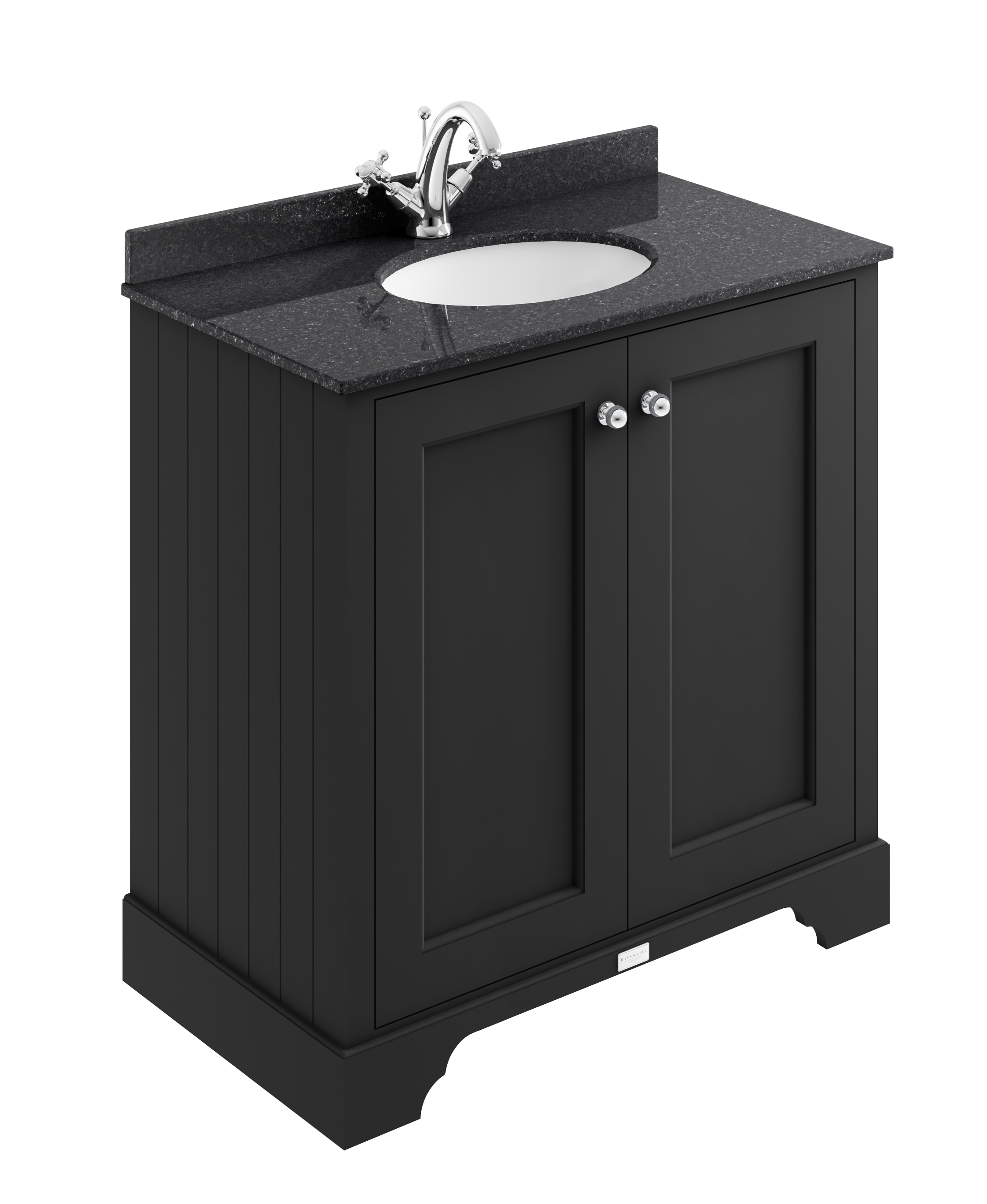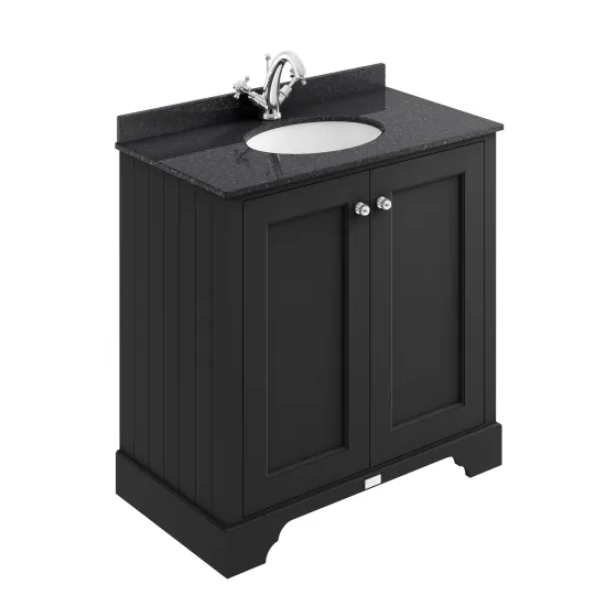 Bayswater 800mm 2-Door Cabinet With 1 Tap Hole Black Marble Top Basin - Matt Black