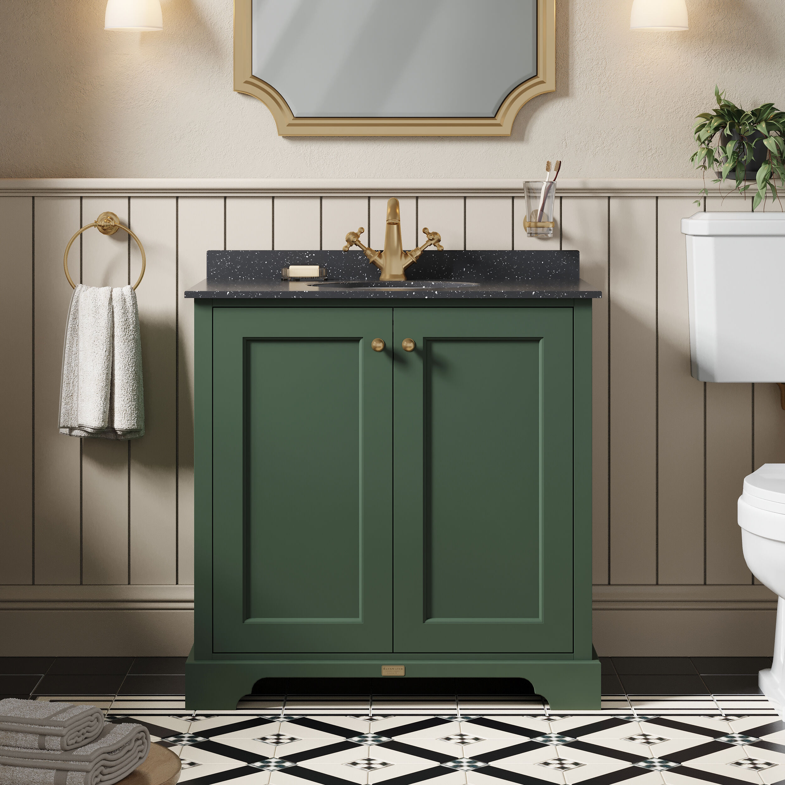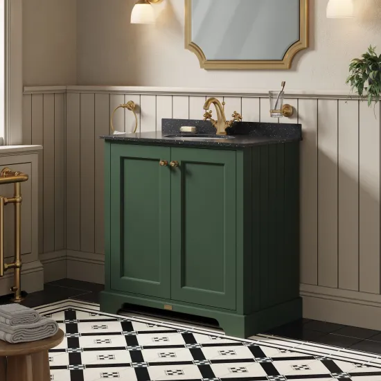 Bayswater 800mm 2-Door Cabinet With 1 Tap Hole Black Marble Top Basin - Hunter Green