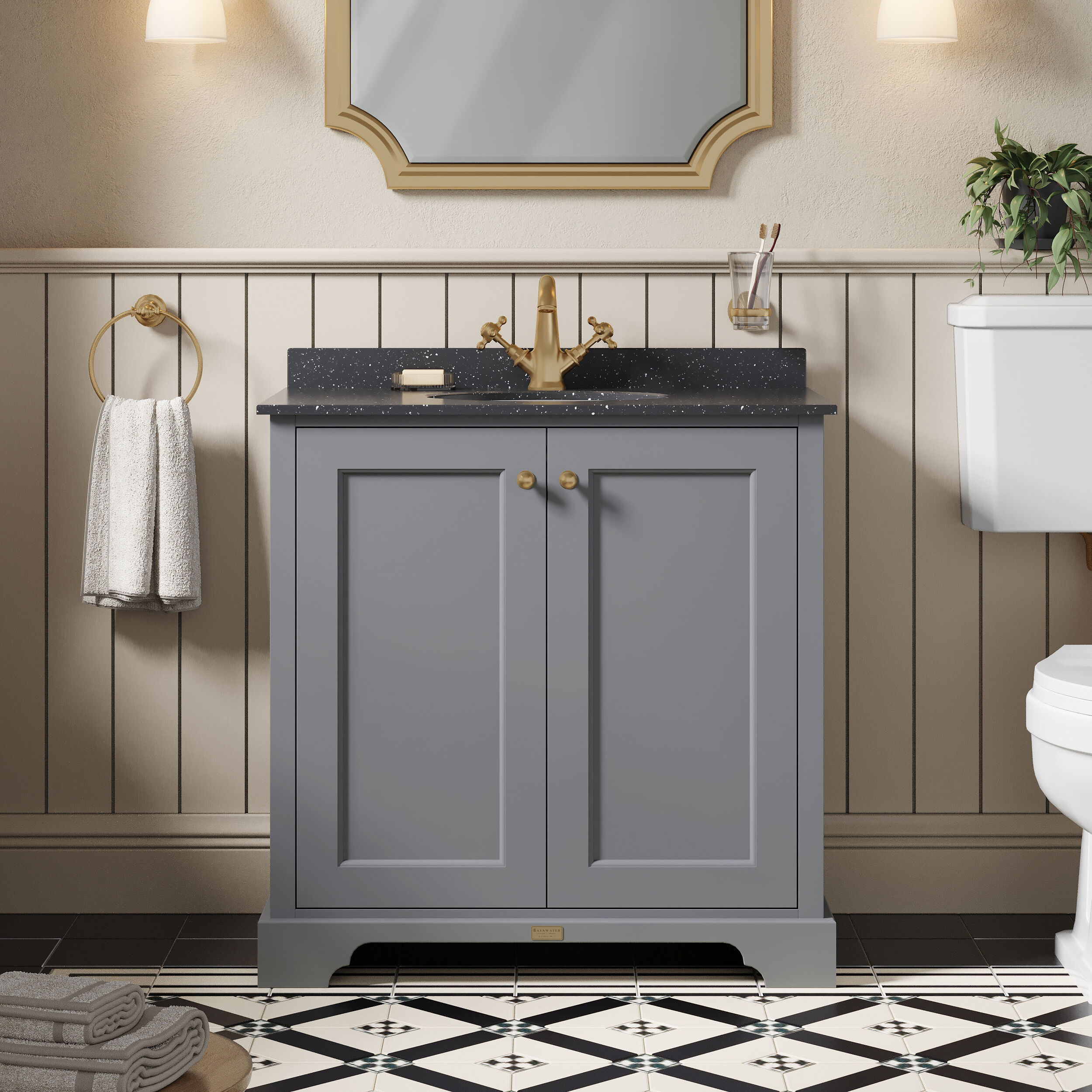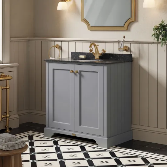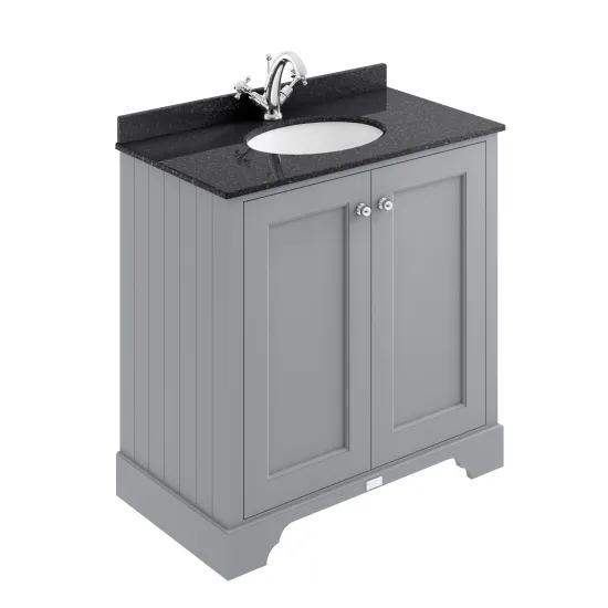 Bayswater 800mm 2-Door Cabinet With 1 Tap Hole Black Marble Top Basin - Plummett Grey