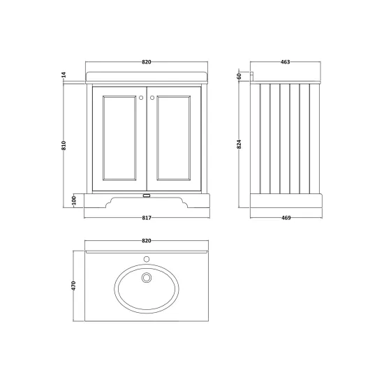 This striking grey cabinet creates a unique centre piece to any classic themed bathroom