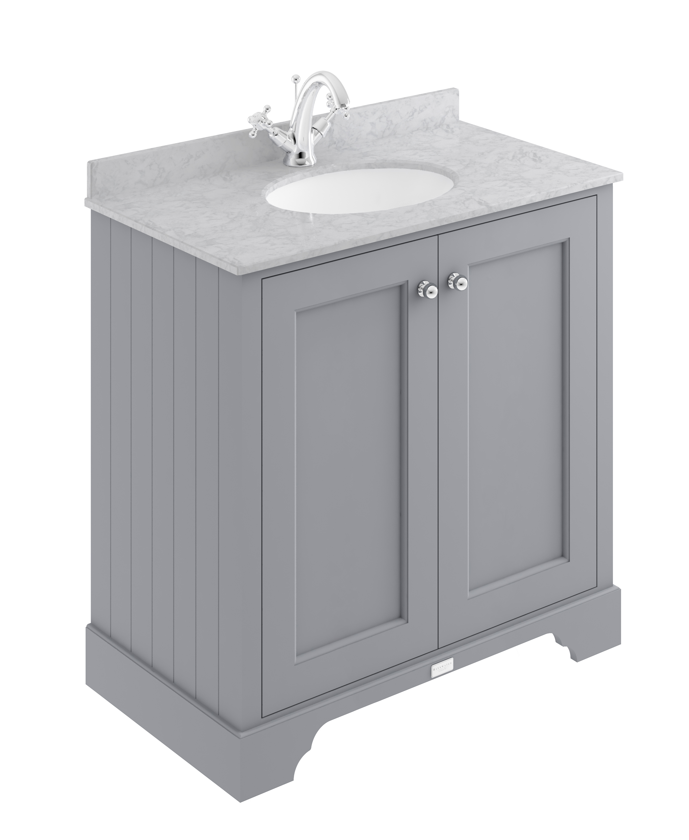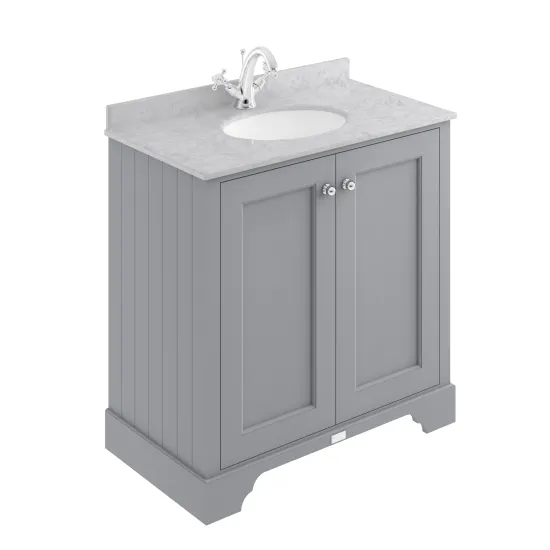 Bayswater 800mm 2-Door Cabinet With 1 Tap Hole Grey Marble Top Basin - Plummett Grey