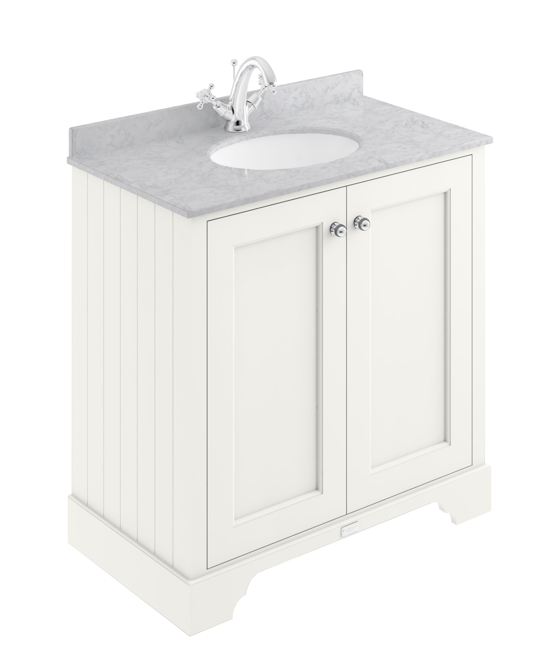 Bayswater 800mm 2-Door Cabinet With 1 Tap Hole Grey Marble Top Basin - Pointing White