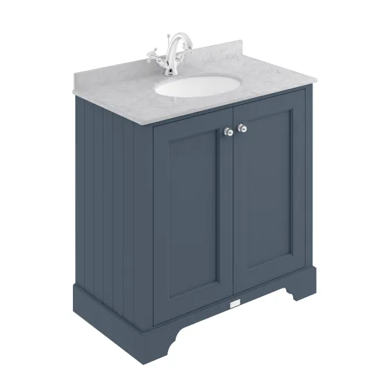Bayswater 800mm 2-Door Cabinet With 1 Tap Hole Grey Marble Top Basin - Stiffkey Blue