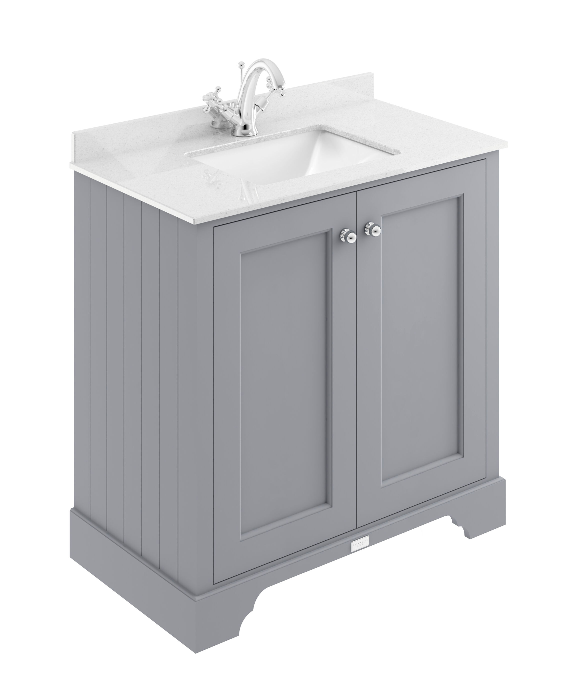 Bayswater 800mm 2-Door Cab With 1 Tap Hole White Marble Top Basin - Plummett Grey