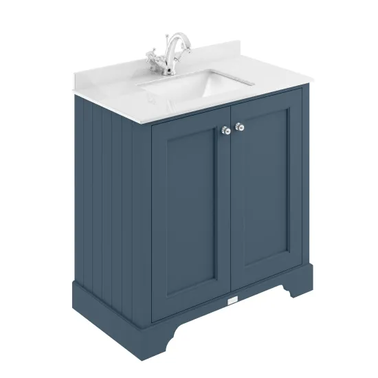 Bayswater 800mm 2-Door Cab With 1 Tap Hole White Marble Top Basin - Stiffkey Blue