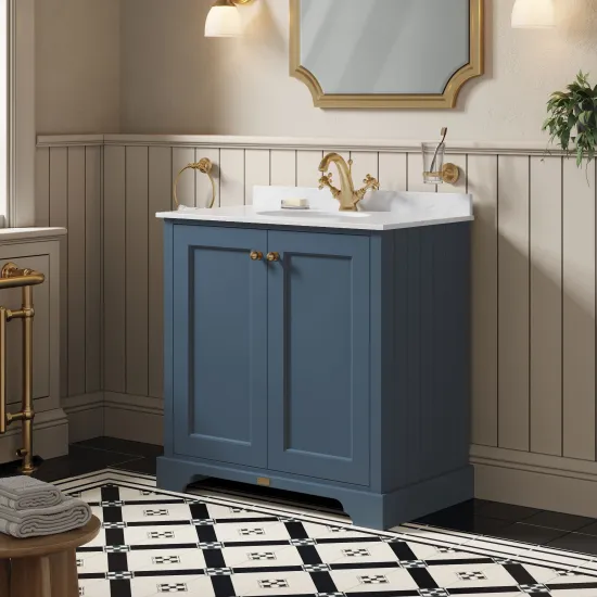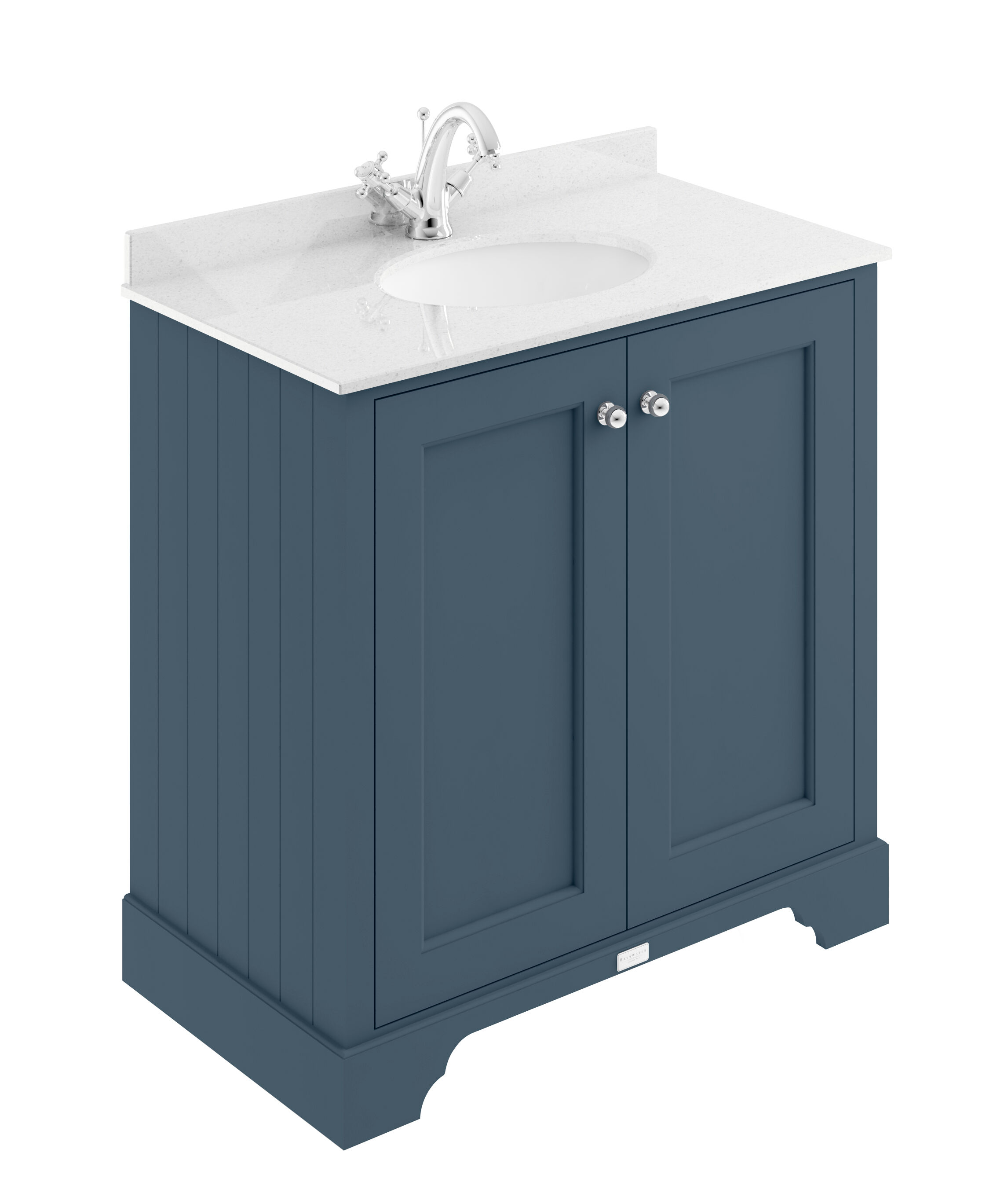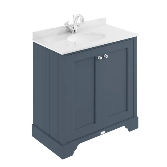 Bayswater 800mm 2-Door Cabinet With 1 Tap Hole White Marble Top Basin - Stiffkey Blue