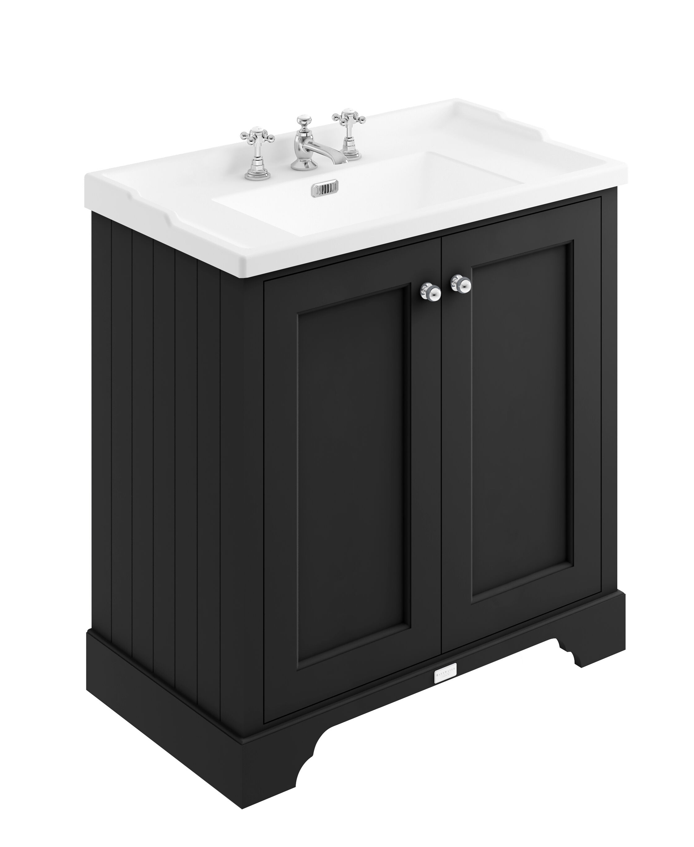 Bayswater 800mm 2-Door Cabinet With 3 Tap Hole Basin - Matt Black