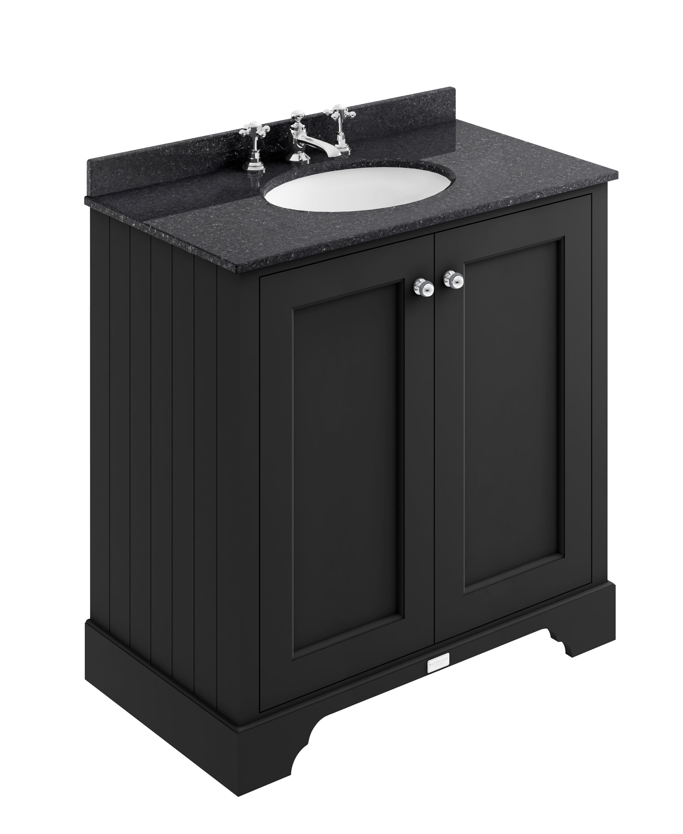 Bayswater 800mm 2-Door Cab With 3 Tap Hole Black Marble Top Basin - Matt Black
